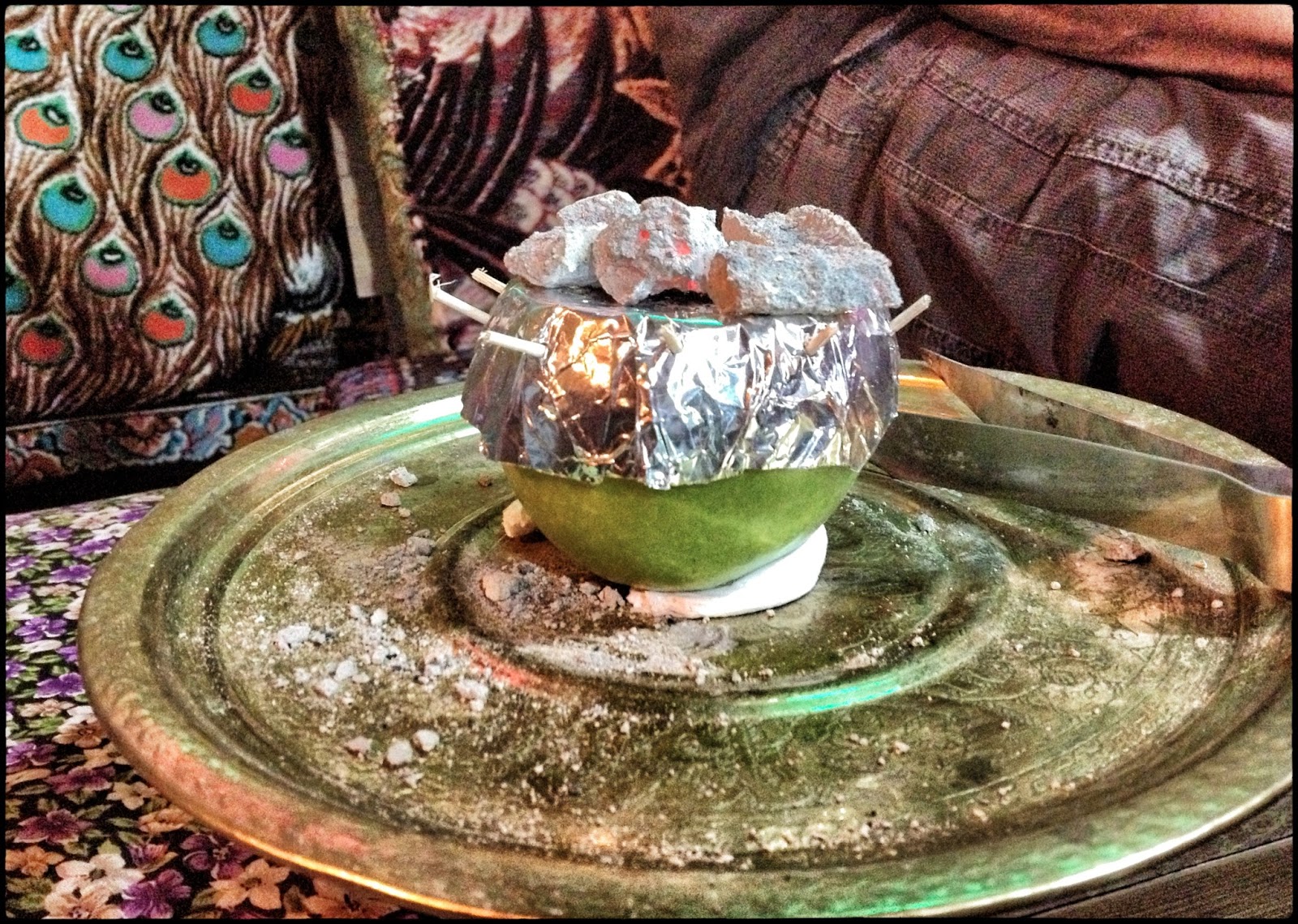 Elmanin icine elma koyup, elma suyunda, elma ile servis edilmis bir elma nargilesi.
