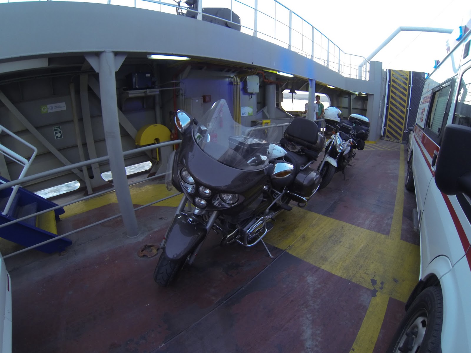 Kahvalti sonrasi sehitlikleri ziyaret etmek uzere Eceabat'a geciryoruz 3 motorla. Feribot uzerinde motorlar bir baska guzel duruyor. Merakli gozler arabalarin icinden bizi izleyip ic geciriyor.