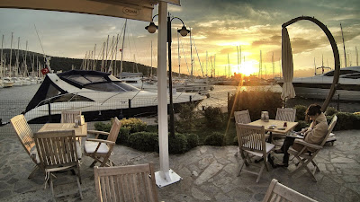 Ozgunlerin teknesine gidiyoruz. Marinada birkac saat geciriyoruz ama yarin yola devam etmemiz gerek. Cok gec olmadan kendimizi bir kez daha muhtesem manzarali Ozgun Malikanesi'nin kanepelerine birakiyoruz.
