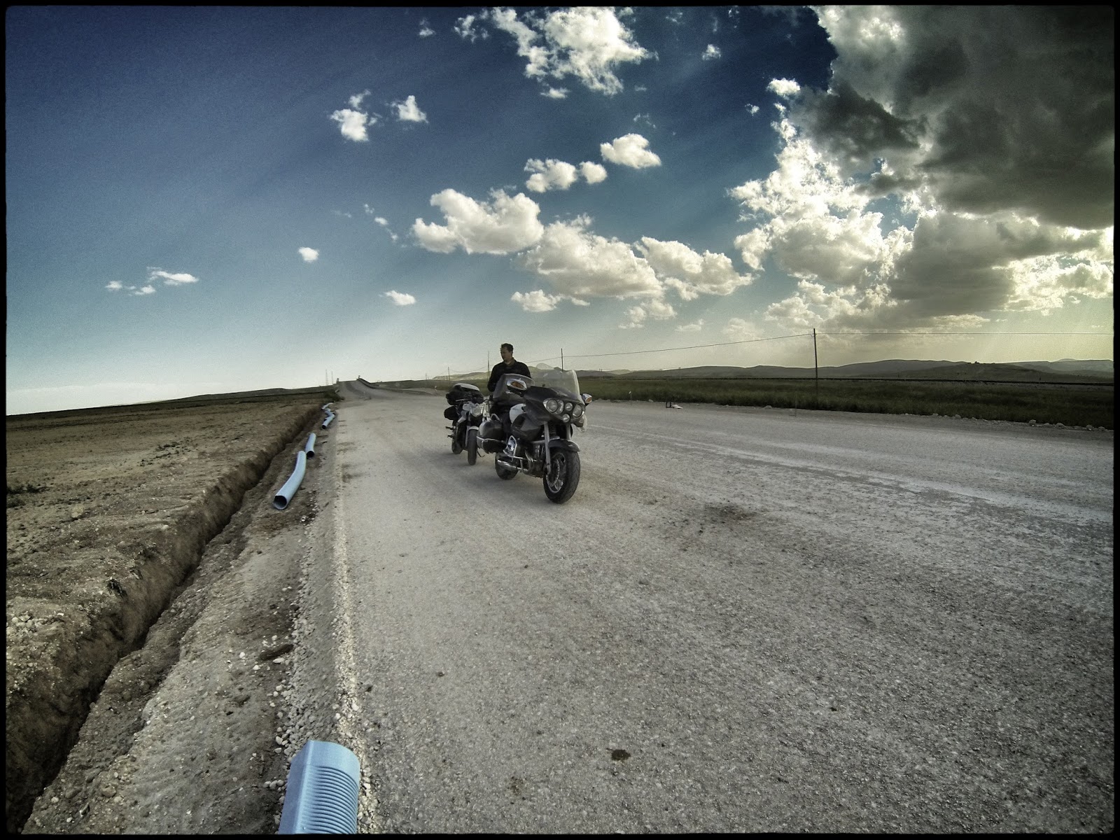Kahvaltinin ardindan su anda blogumuzun kapak fotografi olan pozu da cektikten sonra yola devam ediyoruz. Anlatacak pek birsey ne yazik ki yok cunku ic anadoluda Ankara'ya dogru gidiyoruz. Tatil resmen bittigini hem gorsel hem pisiklojik olarak bize kanitliyor.